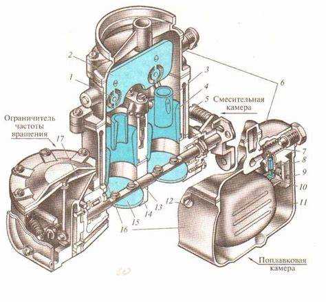 Ключевым параметром является система настройки обогащения смеси, позволяющая эффективно регулировать соотношение воздуха и горючего. Также важна способность к поддержанию устойчивой работы на разных оборотах двигателя благодаря использованию дифференциальных жиклеров и настраиваемых элементов. Эффективность работы достигается за счет продуманной геометрии корпуса и разветвленной системы каналов, что минимизирует потери давления и предотвращает образование пробок.
